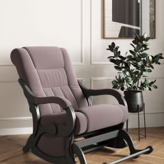 Для комфортного отдыха имеет маятниковый механизм , который выполняет классическую функцию покачивания, при этом она не оставляет вмятин на напольном покрытие. Кресло обтянуто искусственной кожей, смотрится современно и стильно, каркас-дерево, боковины выполнены в виде криволинейных деталей, образующих ножки-опоры, материал боковины фанера. На боковинах имеются мягкие подлокотники.